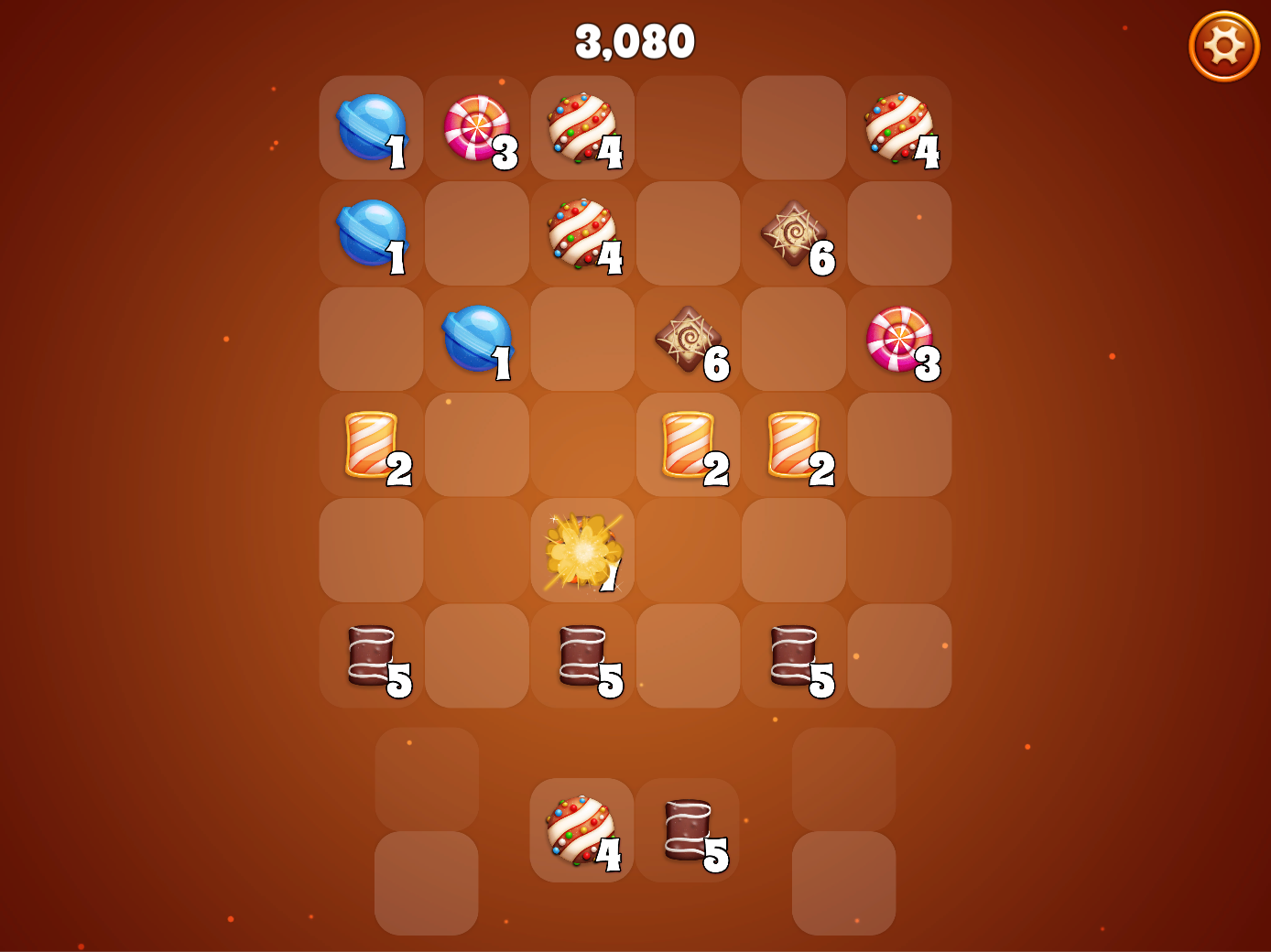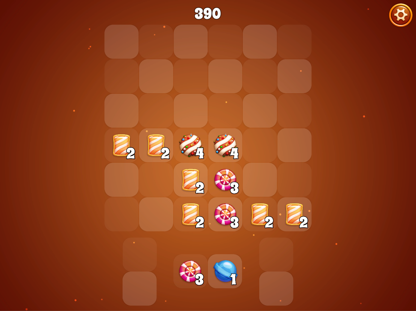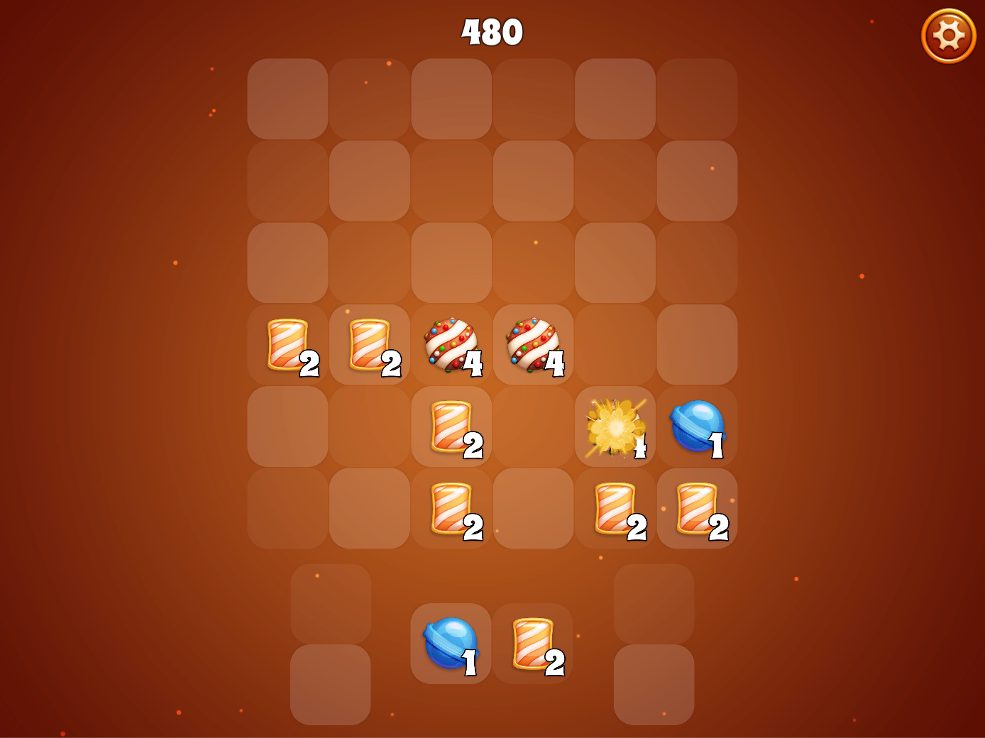 Earn a power-up candy for every top-level merge, and drop one on the board to instantly clear a 3x3 grid, a full row, a full column, or a full row AND column at the same time!
